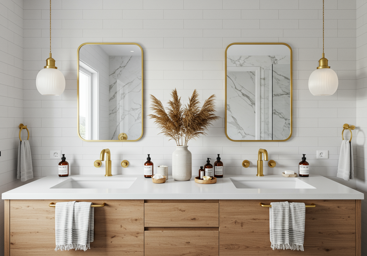 Are you looking for inspiration to revamp your bathroom and give it a luxurious touch? Look no further than the Newton #DesignsbyErica project, which perfectly combines elegance and luxury with its white and gold color scheme.