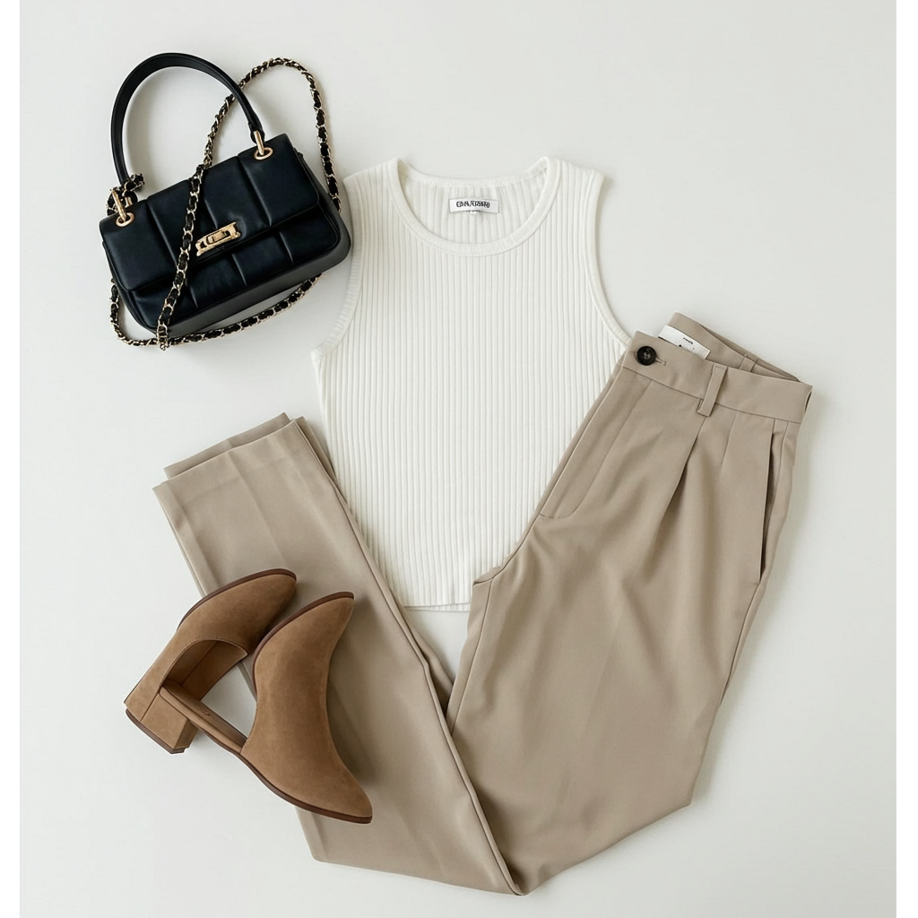 Neutral tones never go out of style; in this collection, we celebrate their captivating allure. Discover the Abercrombie tailored pants and white H&M bodysuit, both embracing the timeless class of neutral colors, completed with the perfect Coach crossbody bag. These fashion choices complement any wardrobe and add a touch of sophistication to your everyday style. Pair them with our neutral-toned interior pieces for a cohesive and elegant look.