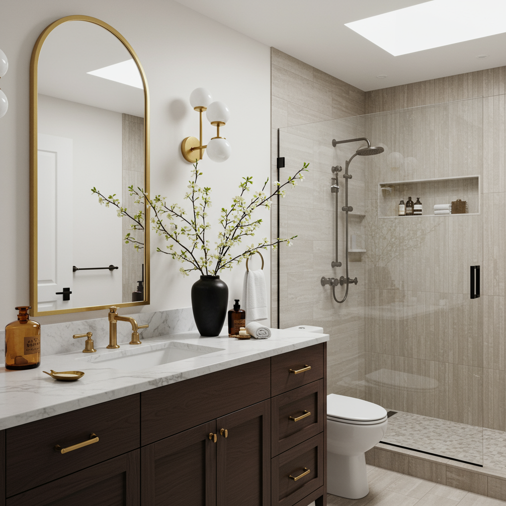 Top Knobs Bar Pulls & Golden Arch Mirror: Functionality Meets Beauty